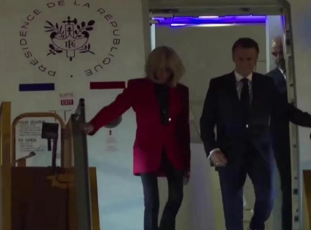 两人下舷梯时,马克龙脸上的微笑也不像是装出来的,而布里吉特虽然没有挽着马克龙的胳膊,倒颇有几分“小女人”的姿态在里面。
