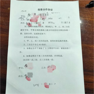 “当初说好有福同享、有难同当,怎么项目失败了,责任就全落到我头上?”冯先生手中的《投资合作协议》已被摩挲得边角发皱,这份2023年与黄某荣、李某东签订的协议,明确约定三人各出资10万元,共同投资“北海冷冻库”及“广西某农牧投资有限公司”项目,盈利共享、风险共担。