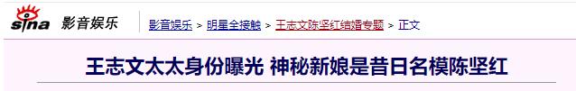 信息来源:王志文太太身份曝光 神秘新娘是昔日名模陈坚红 2008年03月14日05:18 新浪娱乐