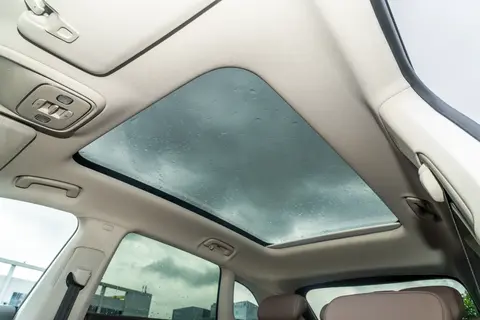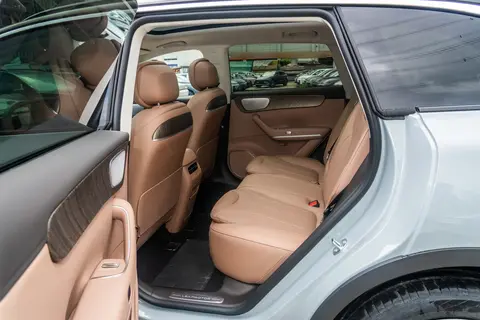车侧无框车门搭配隐藏式电动门把手,是我觉得特别有范儿的设计。拉门动作顺畅,仿佛打开豪华车车门,仪式感十足,隐藏门把手也有助于降低风阻。20英寸轮毂设计动感强烈,上路特别显眼。销售说车身溜背角控制在30度黄金角度,既不损失后排头部空间,又把风阻系数降至0.28Cd,为续航加分。车顶配备1.49平方米全景星空顶,是家里孩子喜爱的配置。孩子路上能悠闲看云彩,且紫外线隔绝率高达99.59%,夏天开遮阳帘也不用担心晒黑。全景顶配备电动遮阳帘,按钮轻轻一按即可自动开闭,十分贴心。