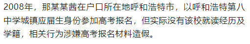 像那尔那茜这种,户籍在内蒙,但实际在北京读高中的,就不符合规定。