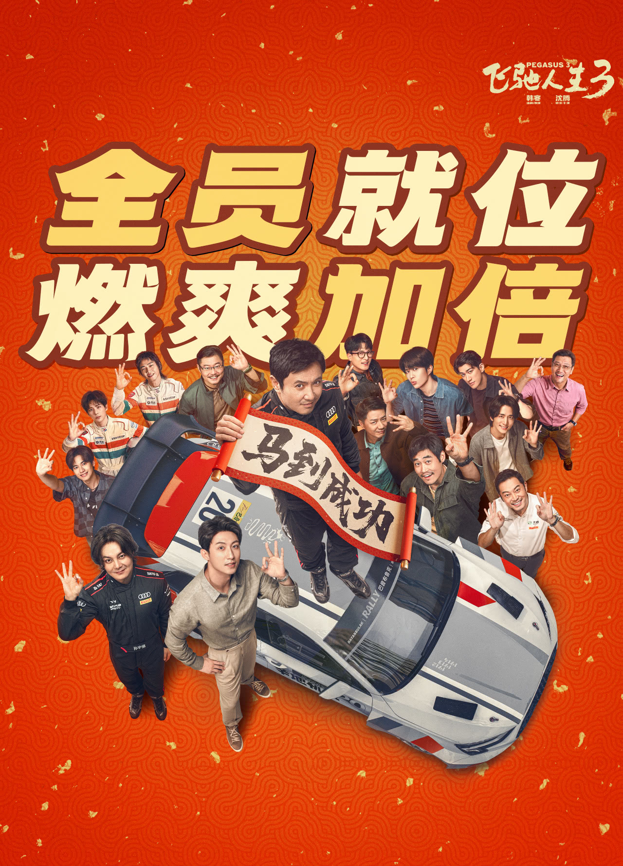 为了匹配这场国家级别的赛事,《飞驰人生3》打造了系列有史以来最庞大的“飞驰天团”。其阵容策略呈现出鲜明的“铁三角回归、全明星集结、熟人局效应”三层逻辑。