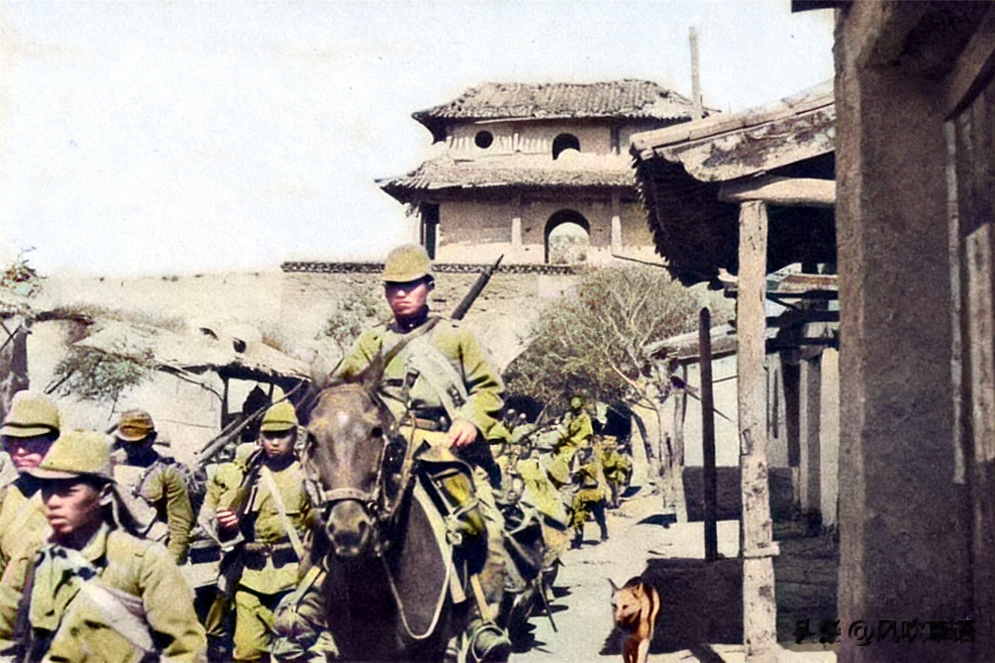 1937年9月下旬,侵华日军进犯献县,城内守军只是象征性地抵抗了一下便向南撤退了,日军几乎不费一枪一弹便占领了县城。图为9月29日,从献县南门入城的日军部队。