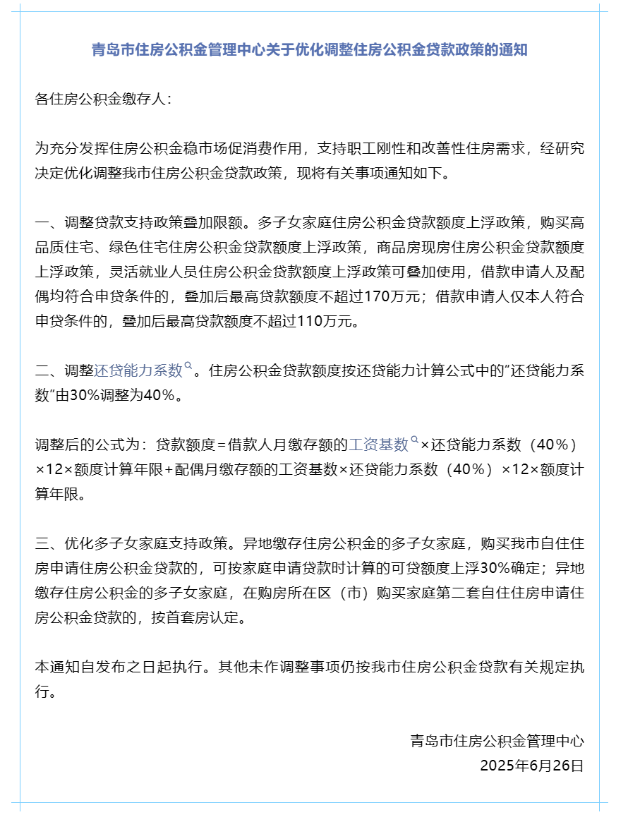 2025年6月26日,青岛公积金管理中心甩出“王炸”新政,直接把贷款额度天花板捅到170万,这波操作简直是刚需族的“购房神器”啊!