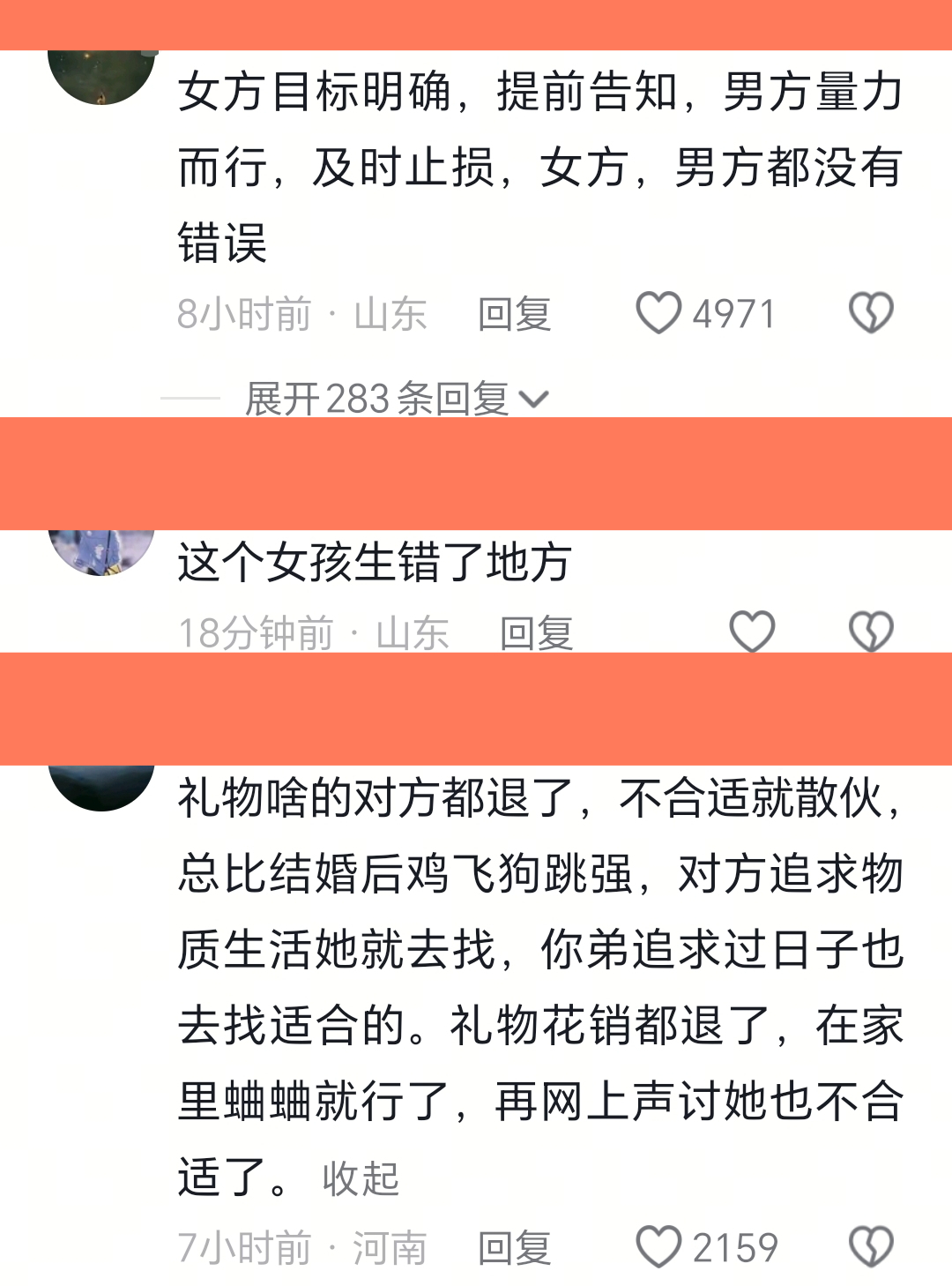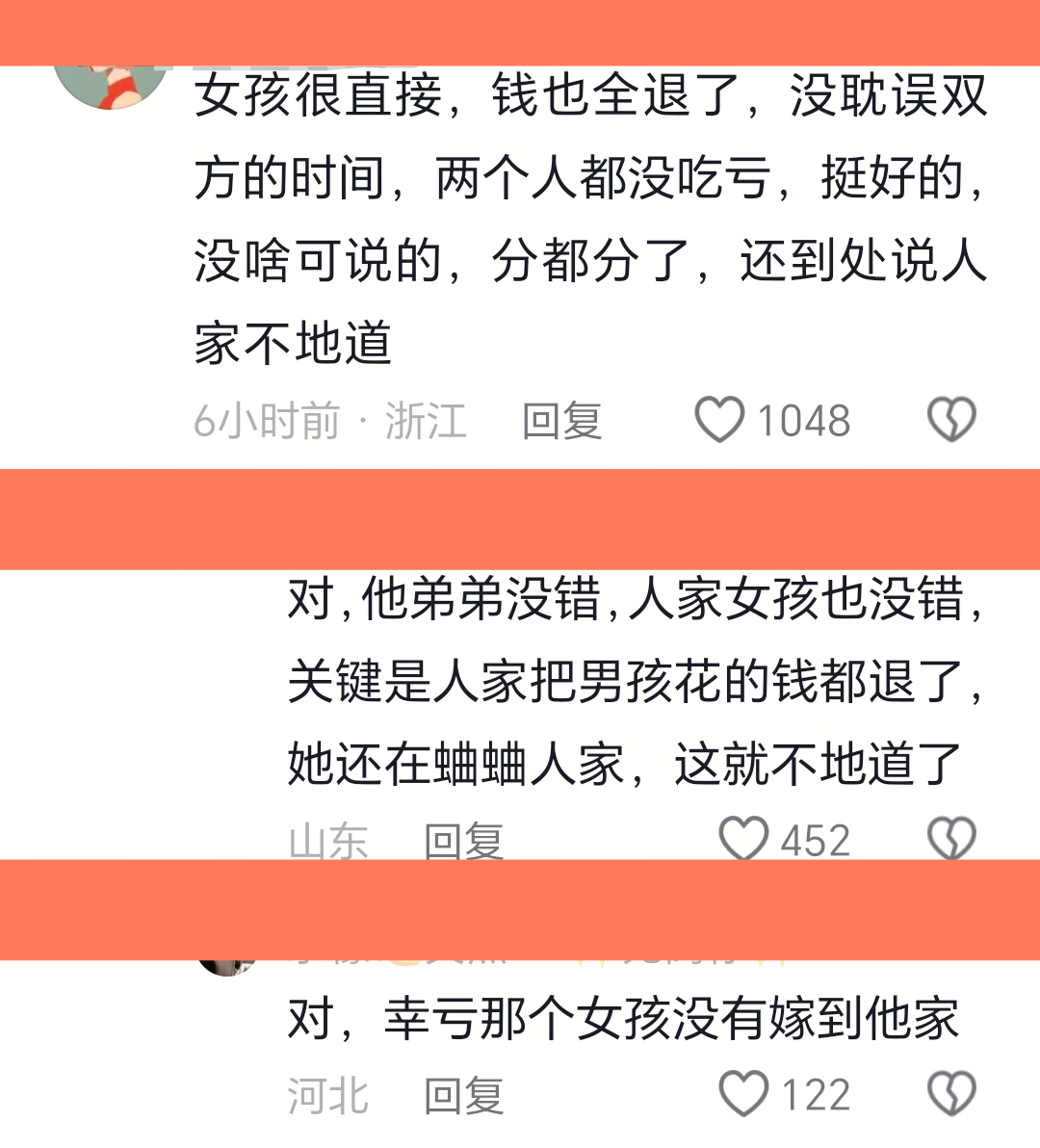 有网友说,人家没看上你弟弟,说白了就是你家没够上那个门槛,所有标准她不降低,把话说死,你想你就往上够,不想够就算了,也不勉强。而且你说不愿意,人家不也全额返还了吗?还要怎样?你弟单身是应该的。
