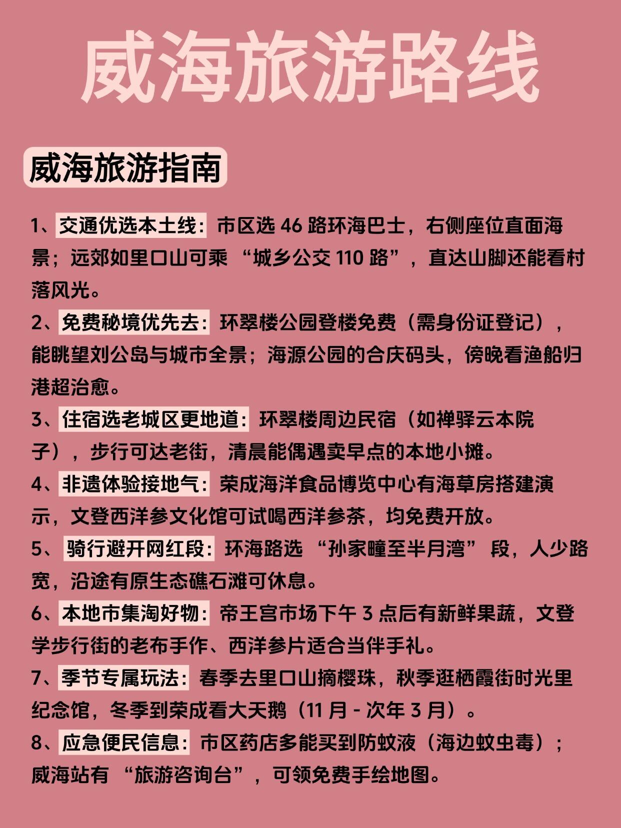 家人们,威海太好玩了,蓝天、沙滩、大海,很惬意,整理了这份攻略供大家参考!