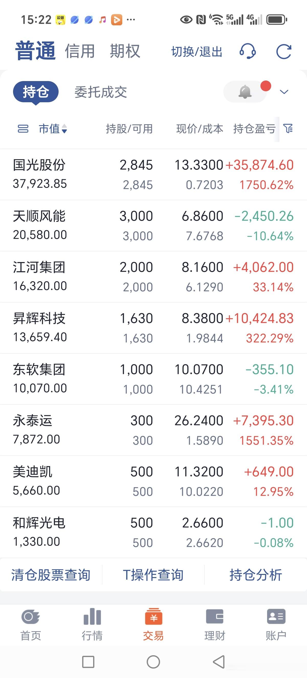 这是我目前持仓情况,看着好多股票,其实有的是以前中签的一直持有到现在,比如“国光股份”,应该持有十年了!