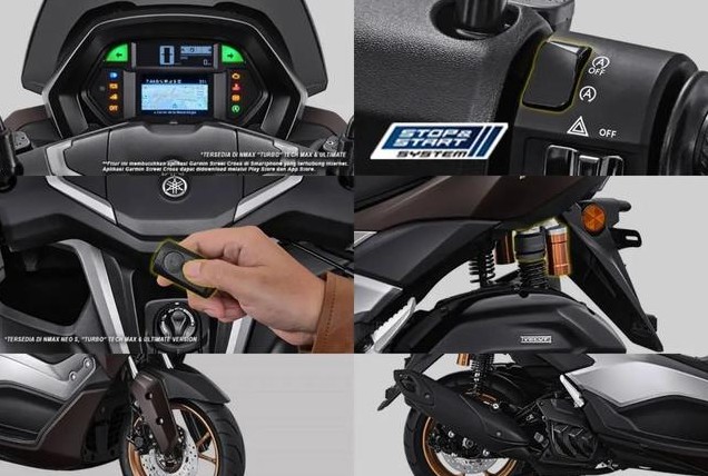 值得一提的是这台NMAX搭载同款Blue Core单缸水冷SOHC四气门引擎,其中Turbo版还载有最新的YECVT(Yamaha Electric CVT)技术。实际排量依旧为155cc,最大功率11.3 kW/8000rpm,最大扭矩14.2Nm/6500rpm,新款可以提供两种骑行模式,其中T-Mode主要针对城市骑行,S-Mode主要针对山路骑行。