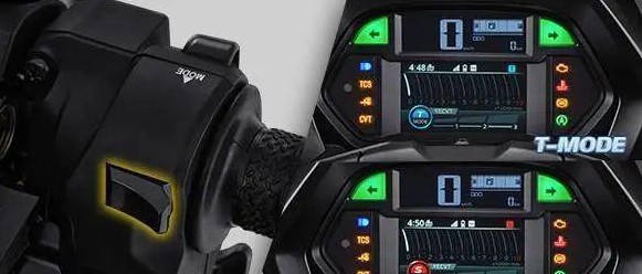 Turbo版车型还提供Y-Shift的“涡轮增压”动力选择,该模式下共有低/中/高三种加速模式,通过左侧手把按键上的按钮进行“涡轮增压”模式的选择,这次“涡轮增压”的实现也是通过YECVT技术来实现,通过对气门更精确的控制来实现增压动力的输出。