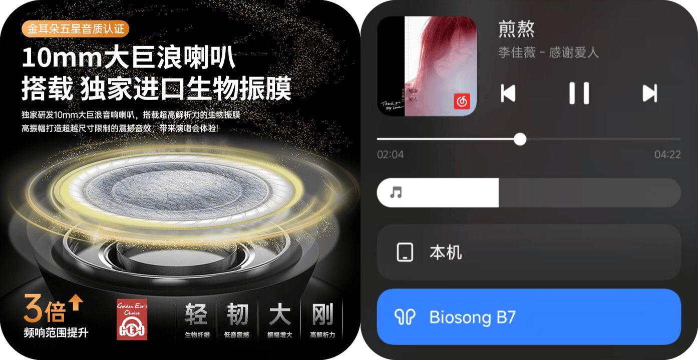 ▲“百耳颂(BIOSONG)”代表“生物(BIO)” “丽声(SONG)”,正是“复合生物振膜”和“丽声音响喇叭”两种技术的巧妙呼应。那么,今天带来的就是来自百耳颂系列的第二款产品——双飞燕百耳颂B7开放式新潮耳机(以下简称双飞燕百耳颂B7)。