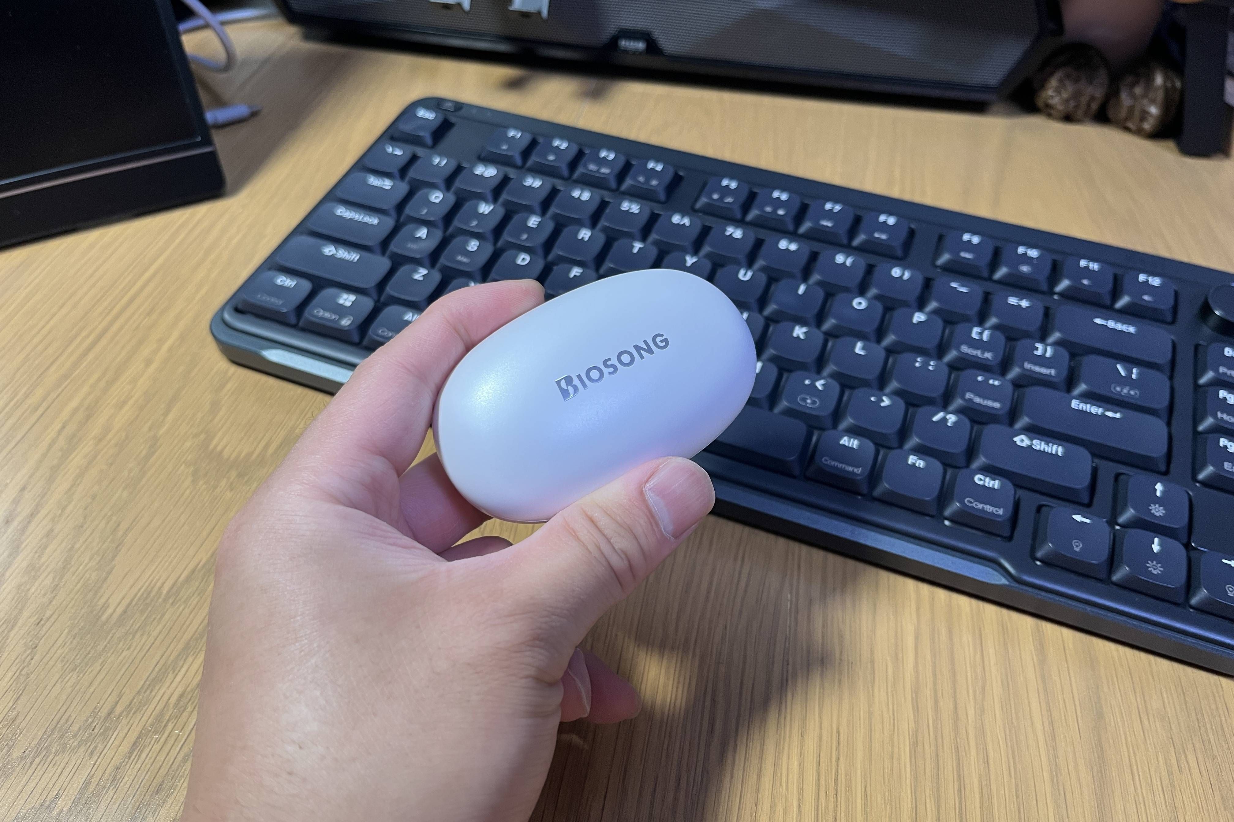 ▲将无胶保护膜去除之后,双飞燕百耳颂B7采用珍珠白配色,鹅卵石造型表面细腻,在不同光源角度下会泛起细碎、不规则如珍珠般的光泽,非常符合其高端新潮耳机的定位。