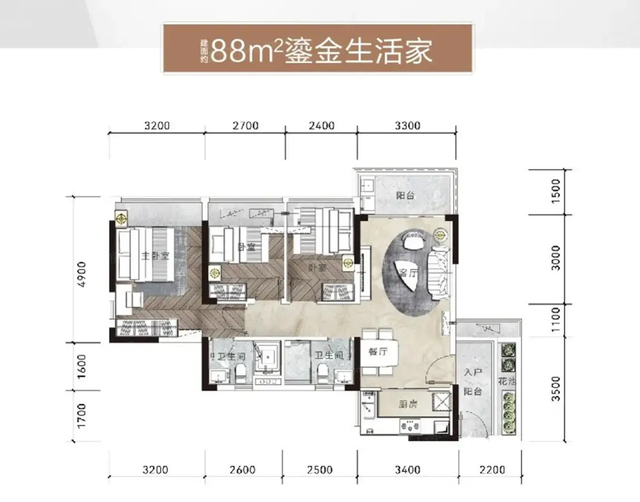 鎏金华府瞄准刚需与改善家庭的核心诉求,推出四大精装户型: