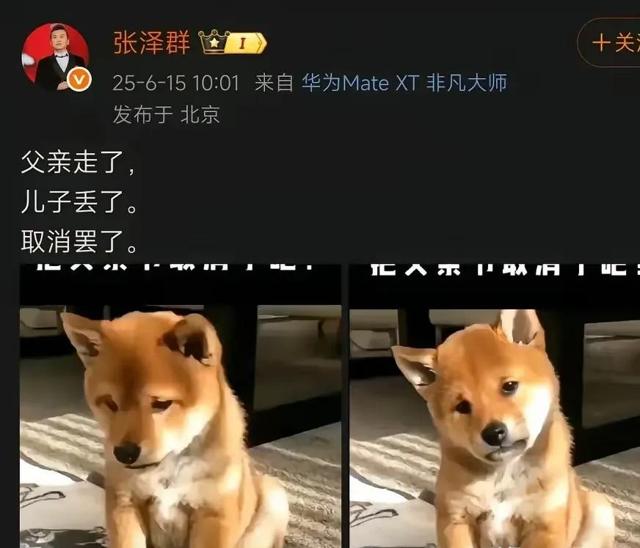 张泽群却在社交媒体上发了一条沉重的动态:“父亲去了,儿子丢了,取消罢了。”