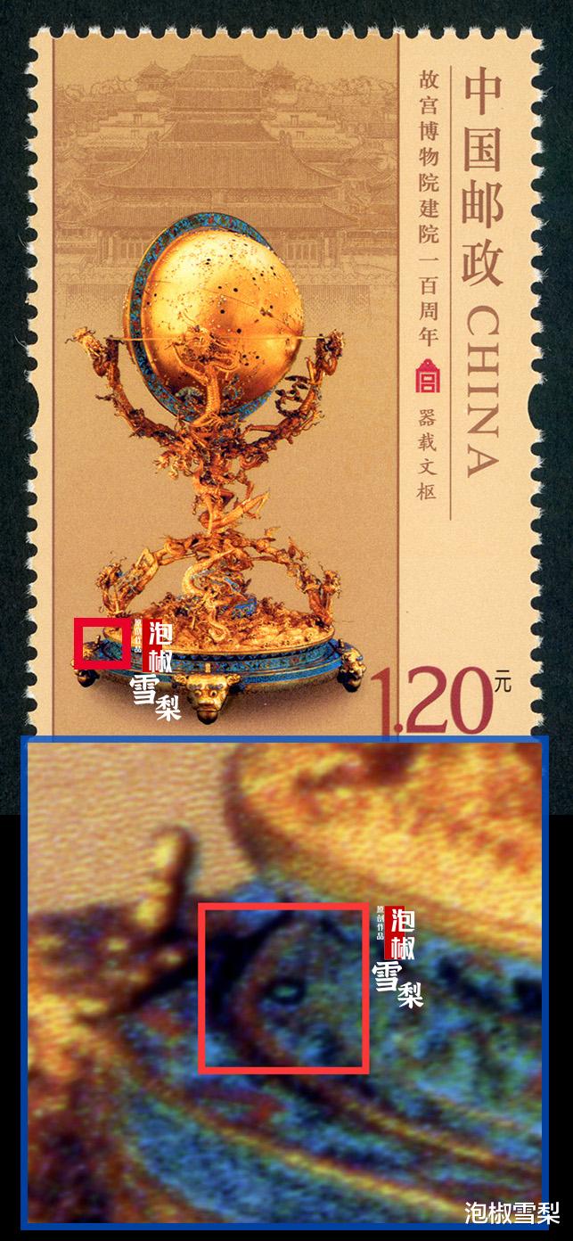 这次邮票的齿孔效果比较好,但背面看时能够发现少数纸屑压印,孔径内漏胶情况极少,齿孔切割处也干净平滑,品控上还算严格。