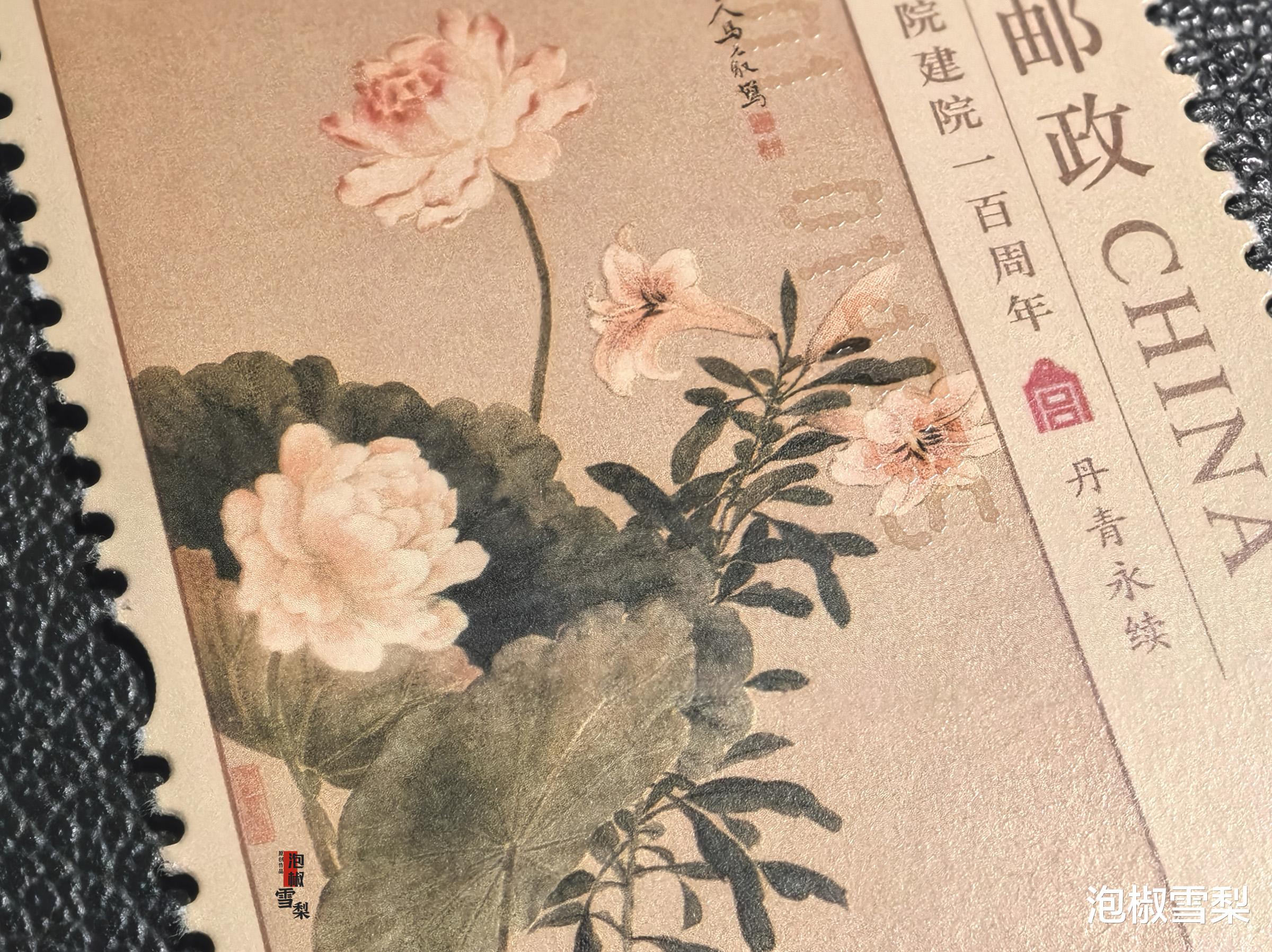 邮票没有采用特殊的压凸工艺,但第二枚在迎光时会有种荷叶层叠时的立体质感,加上红色的故宫标识,整幅画面就像是一幅盖着钤印的古代绘画。