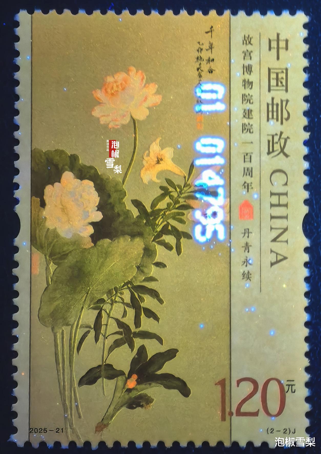 邮票没有太惊艳的荧光表现,由于整体颜色为土黄色,所以荧光的金色对比性不强,仅能凸出画面主体。