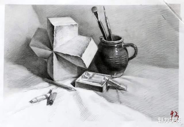 活动中还设置了中考高分画卷展览环节,众多学生、家长驻足观赏,近距离感受优秀作品的形体、构图与表现力。