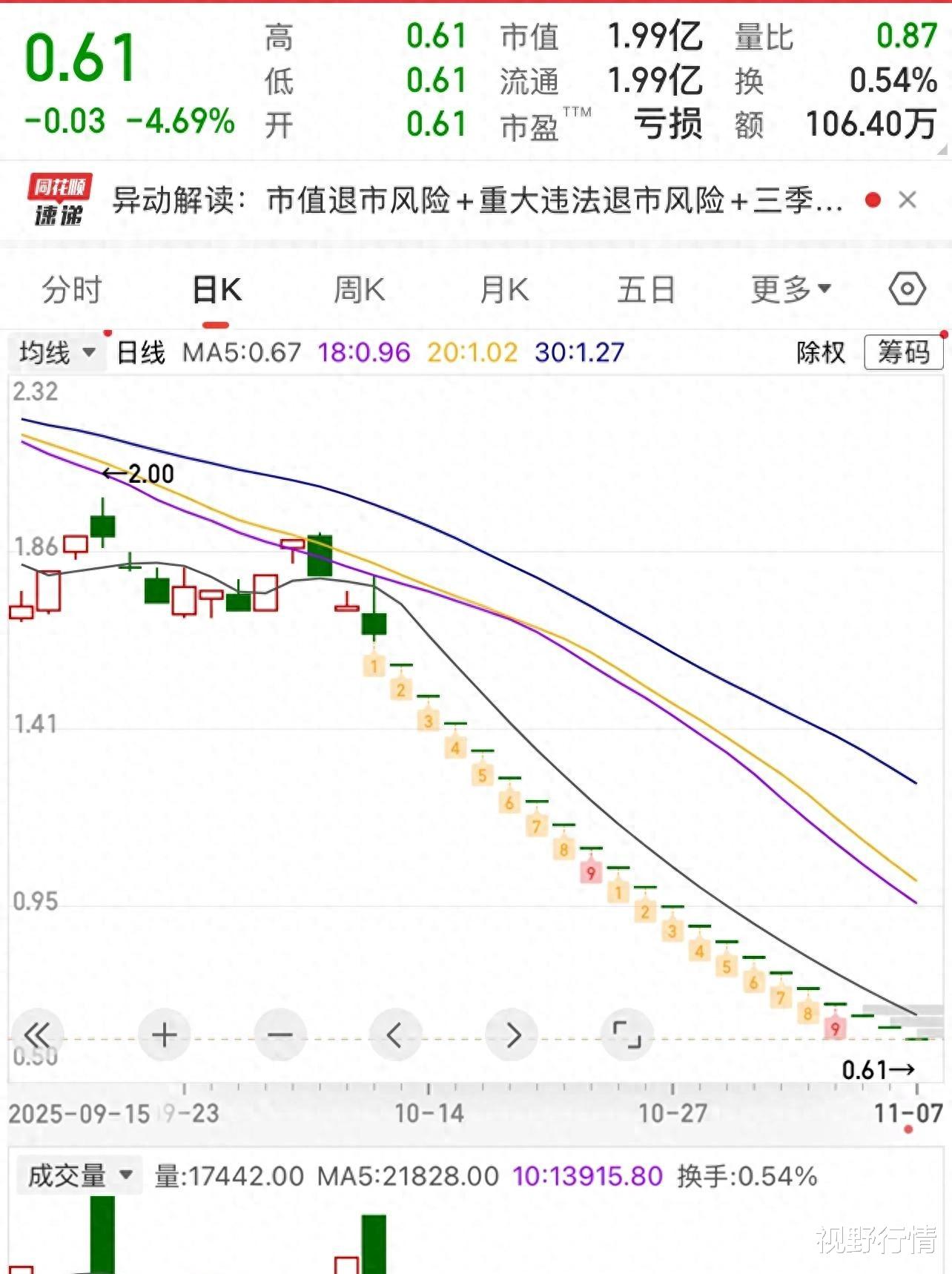 当投资者还在揣测底部时,2025 年 10 月 13 日的首个一字跌停,已然拉响强制退市的倒计时警报。