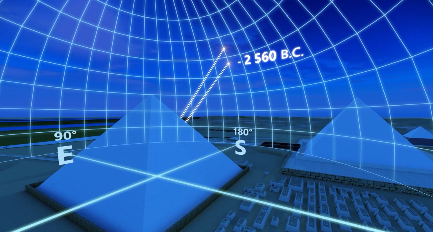 金字塔中有四条从内部延伸至外部的坑道,每一条坑道都对准正在穿越子午线的四颗特殊恒星,分别对正小熊星座的第二颗星“帝星”;大犬座最明亮的第一颗星“天狼星”;天龙座第一星“右极星”;还有就是“北极星”。