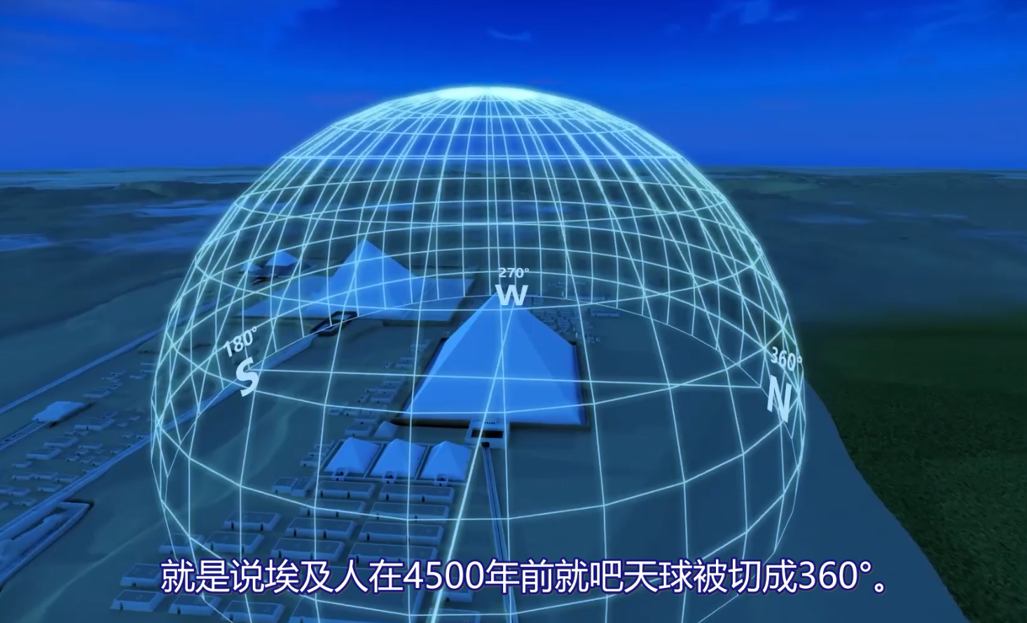 那么如此精准的对齐意味着埃及人在4500年前就已经把天球被切成360°,并了解天空在不断地运动这个事情。