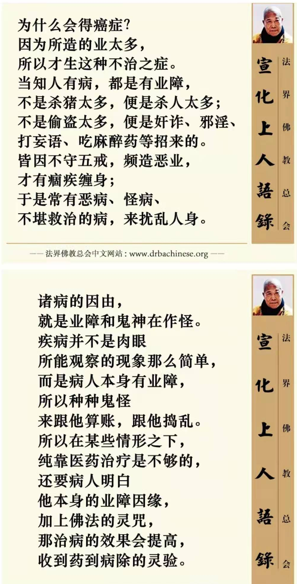 说实话,二十年前我都没有听过癌症、白血病,更别提其他罕见病了,当然那会活动范围小,信息也不像现在发达,现在我老家都有小孩子得白血病,疑难杂症求助的新闻报道更是铺天盖地,大家早已司空见惯。关于治病,西医的技术手段固然有科学支撑,老祖宗看透本质的治心智慧更需要引起我们的重视和践行,释儒道千百年来倡导人伦纲常、忏悔改过、行善积德,后人也不断完善、宣讲,留下了许多经典,善书和案例,才是难能可贵、直达根本的药方。近代得道高僧们如宣化法师、虚云法师、妙善法师(金山活佛),道家如米晶子张至顺道长,民间大儒如王凤仪老善人,当代也有陈大惠老师、东北刘善人、秦妈等在宣讲道德教育治病医心扬正气,得度获救、命运转折者数不胜数,非常值得思考和学习。
