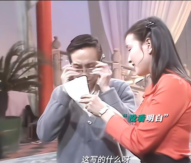 当时,刘晓庆看不清楚节目单,所以让旁边的人帮忙看,但是旁边的主持人也看不清楚节目单。