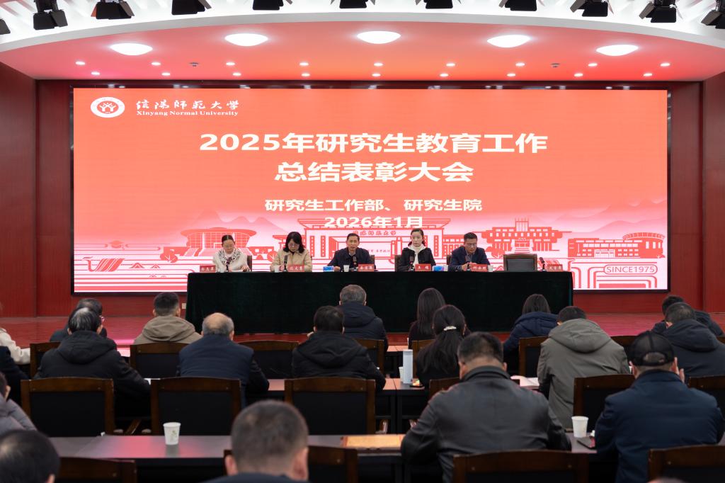 会上,研究生院负责人全面总结了过去一年研究生教育工作取得的荣誉与成绩,提出了存在的不足与短板。党委研究生工作部负责人宣读了2025年研究生教育表彰名单,法学与社会学学院刘文君等10位同志获“2025年优秀研究生辅导员”称号;物理电子工程学院李盈傧等10位导师获“第二届十佳研究生导师”称号;文学院等6个培养单位获“2025年研究生创新实践活动优秀组织单位”。获奖人员及单位代表依次发言。