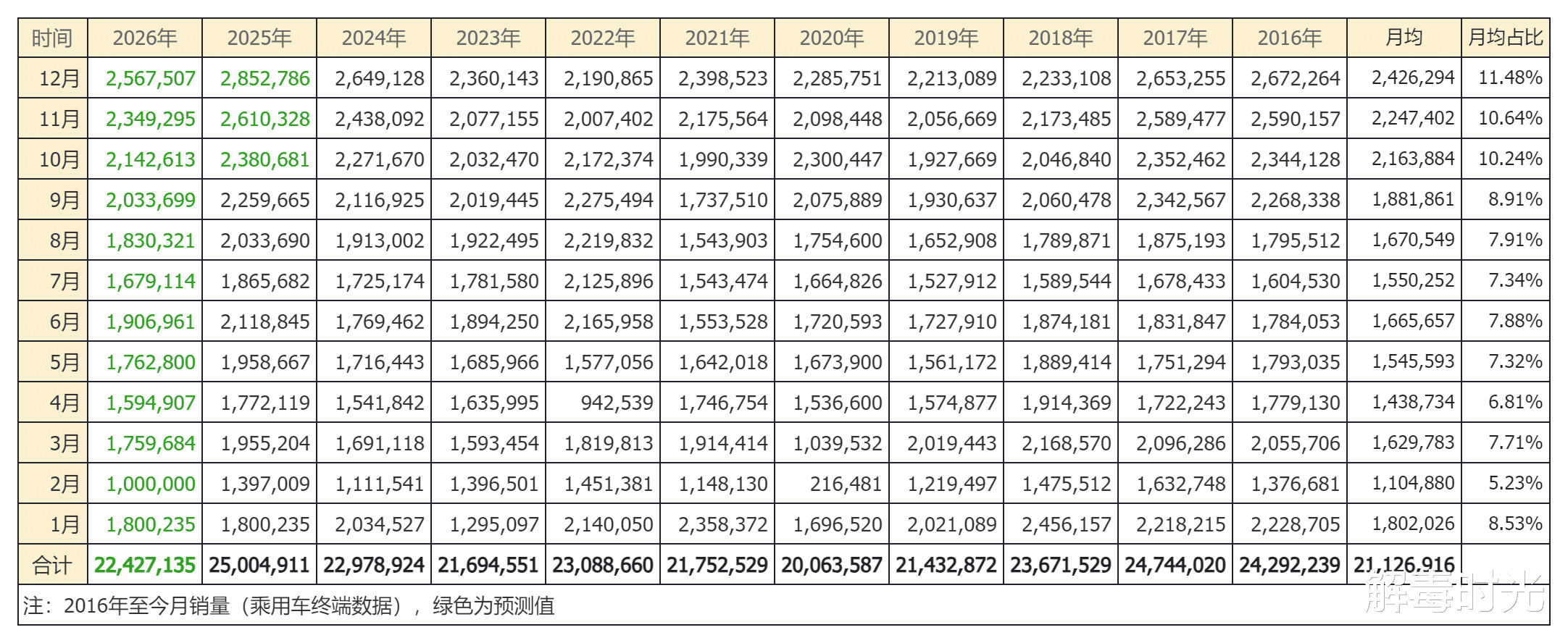 用一个细分市场的价格敏感度来衡量全市场,显然有所偏颇,但预测未来这件事本身并不是一个能够精细到不差分毫的事情。无非就是借此来看一看趋势。在未来的半年中,可以明显预见的情况是,最后一个季度,在购置税退坡以及可能到来的以旧换新政策可能停止的预期下,整个汽车市场进入到加速阶段。参考2024年来看,2025年10-12月可能会有每个月20万左右的增量,年底12月份甚至可能会达到历年来的新高,突破280万单月,同时将2025年的乘用车总体销量固定在近十年来最高点,超过2500万台。2025年的惯性不会马上停止,很多车企追求“开门红”的习惯,以及上一年存留的订单,会驱使大多数车企做出一个共同的选择——“补贴购置税”,即把用户需要多交的购置税以厂家优惠的形式补贴回去。这也会保证2026年1月的销量不会掉的太多。