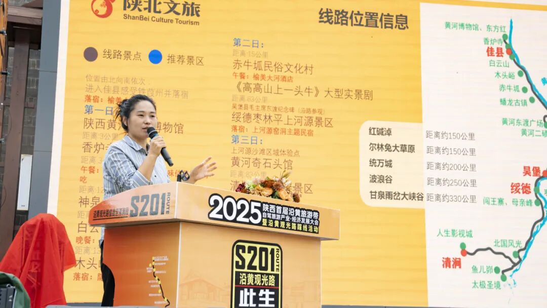 活动中,榆林市与佳县文旅推介官分别推介了地方文旅资源,陕北文旅渠道总监张铭诏发布了沿黄自驾游线路产品及优惠政策。全联旅游业商会自驾旅游与房车露营分会会长于波在主题演讲中提出打造“国民休闲自驾旅游廊道”,并通过六大行动推动产业高质量发展。陕北文旅总经理王波强调本次活动不仅是自驾之旅,更是文化朝圣之行,呼吁车友安全出行、传播黄河文化。