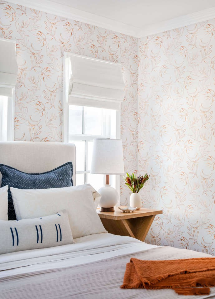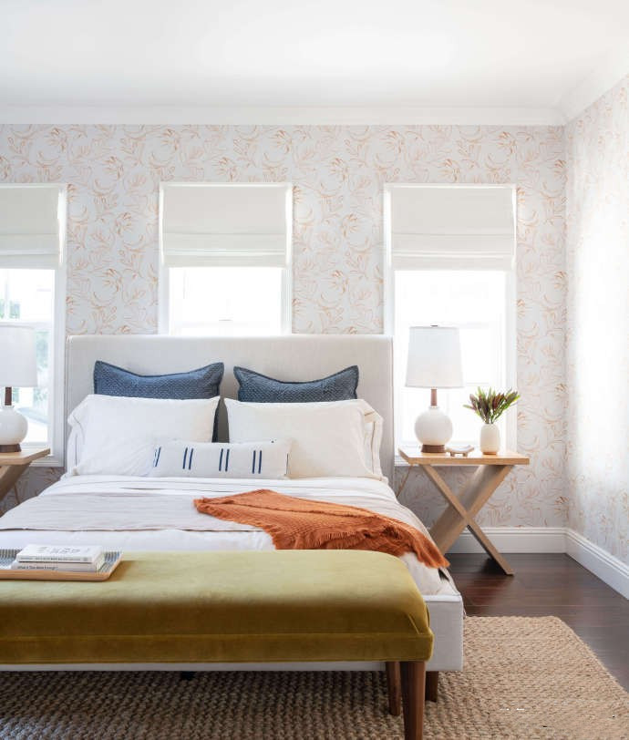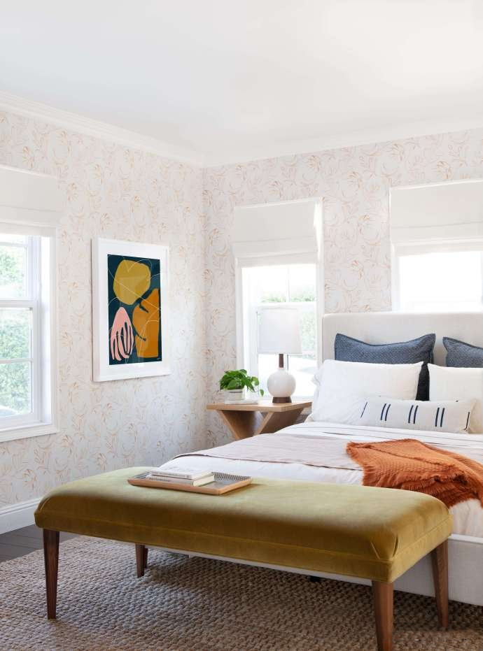 卧室,室内的空间采光也是非常好,墙面做了壁纸的装饰,花纹的壁纸也是按照美式风格的装饰的,挂画的装饰也很好看。