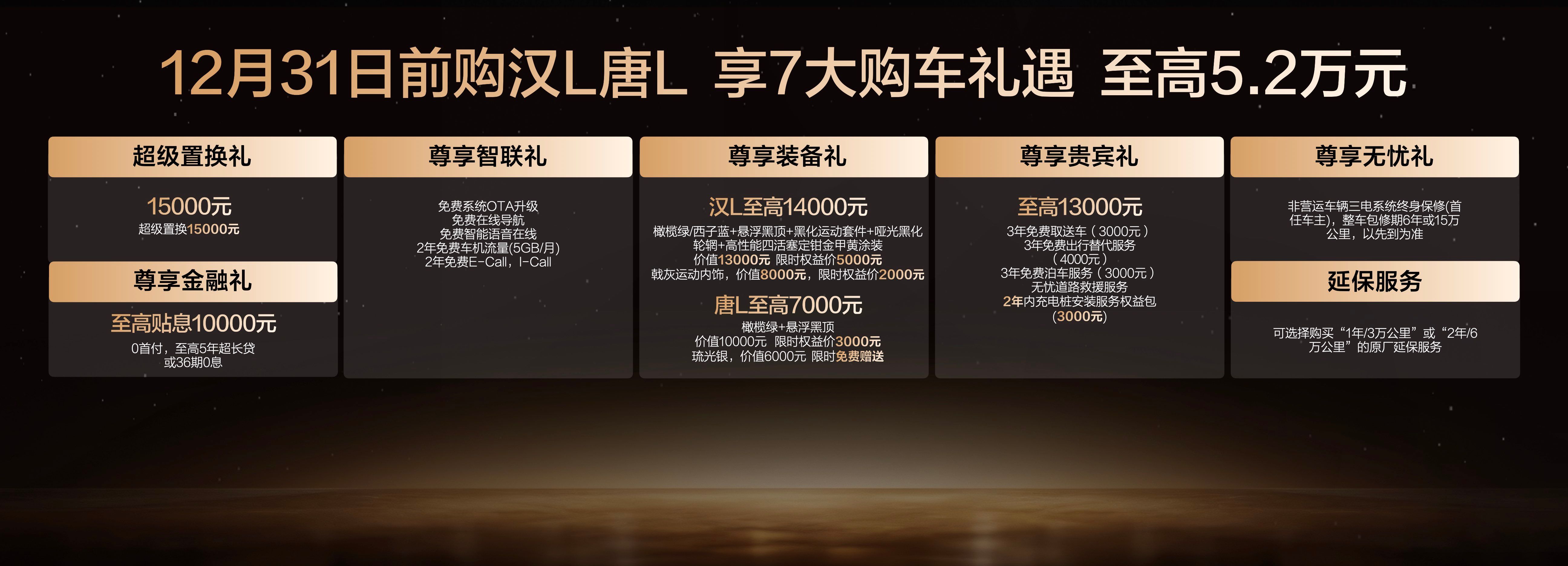 比亚迪划时代旗舰汉L、唐L震撼登场,搭载全域千伏架构与第五代DM技术,彻底终结纯电续航焦虑!汉L EV、唐L EV实现兆瓦闪充,5分钟补能400公里,纯电车型也无需再为续航焦虑。混动版油耗低至3.9L/100km,性能与节能完美兼顾!