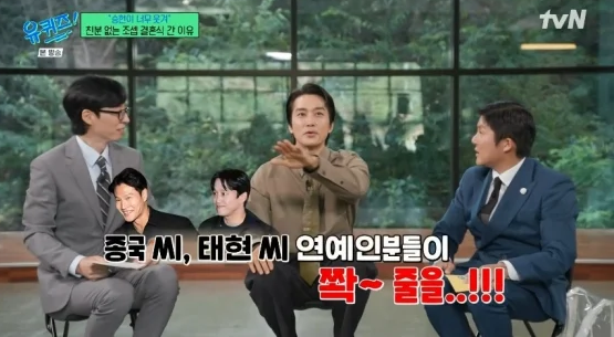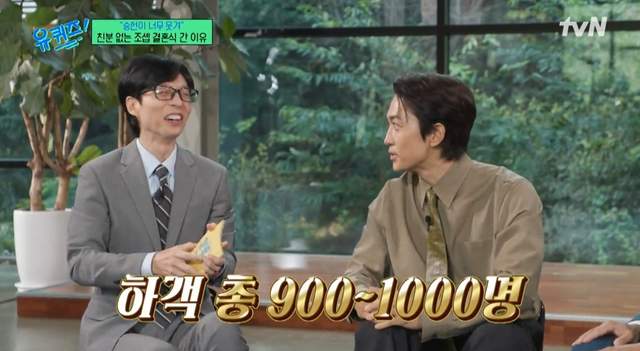 同样参加了婚礼的刘在石也认证了婚礼的大规模。他说“站在我前面的朴俊亨哥也说‘为什么要排队?新郎在哪里?’,卢士燕姐姐和我说‘在石啊,这是哪里给饭吃的啊?你去哪儿拍二维码?’ 做着做着,感觉这个有点问题”。