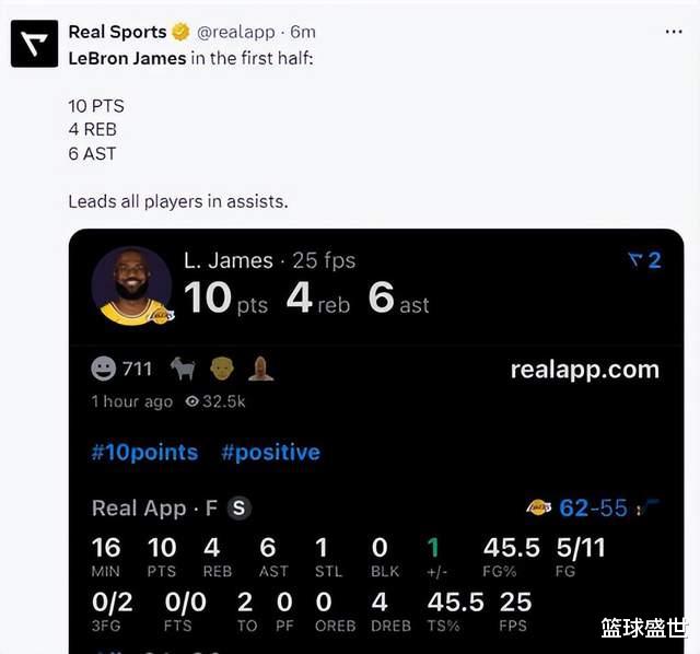 第二节又是8投4中,得到8分4篮板5助攻填满数据栏。半场打完,詹姆斯的数据是11投5中10分6助攻4篮板1抢断。