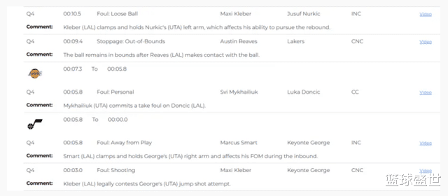除了对于詹姆斯的点评之外,今日NBA官网第一时间还发布了湖人险胜爵士的最后两分钟裁判报告: