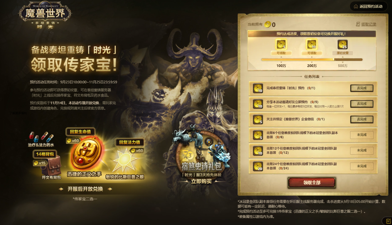 逆光代售提醒:11.18《魔兽世界》时光服上线,搬砖攻略速码!