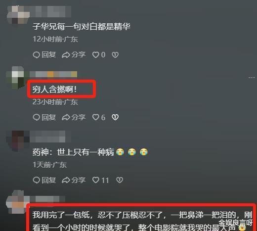 就连网友们也都忍不住纷纷发声,说当时看电影的时候,当“穷”字一出来,他就忍不住破防了,直接哭了一个小时,看来天下的穷人不是一般的多呀。