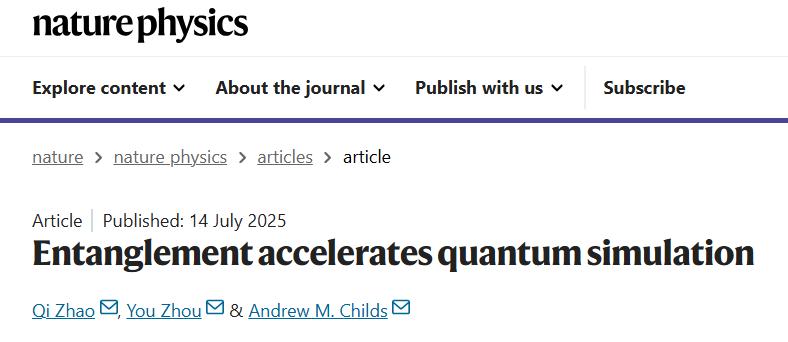 1.Zhao, Q., Zhou, Y.Childs, A.M. Entanglement accelerates quantum simulation. Nat. Phys. 21, 1338–1345 (2025). https://doi.org/10.1038/s41567-025-02945-2