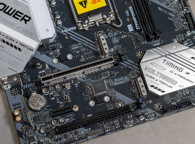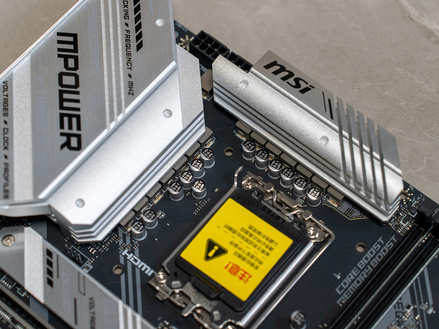 供电部分采用 12+1+1 相数字供电,每相电流承载达 75A,配合双 8Pin CPU 供电接口与扩展型 VRM 金属散热装甲,不仅可轻松驱动 i5-14600KF,即便面对 i9-14900K 也能保持稳定输出,为高性能运算与超频打下坚实基础。