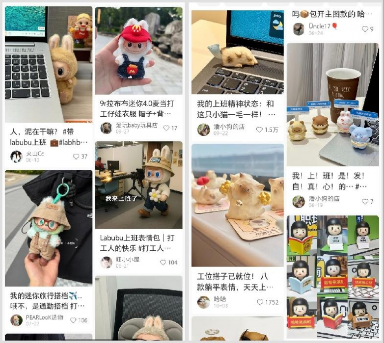 有人在显示器旁贴张画着毛线团的贴纸,有人把印着卡通神兽的钥匙扣挂在隔板上,不少办公桌都有labubu的盲盒玩偶,这些看似不起眼的小装饰,没什么宏大意义,只有简单的小心思:在打卡、报表、会议堆里,留个能安放自己情绪的角落。