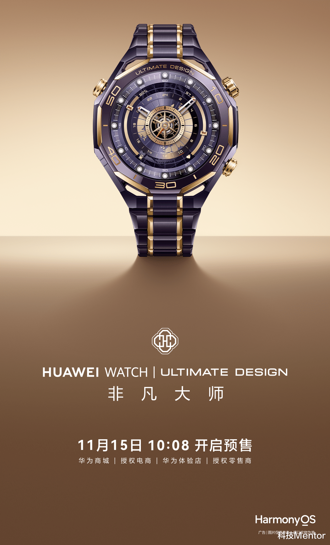11月14日,华为官方微博放出了一张新品预热海报:华为 WATCH ULTIMATE DESIGN 非凡大师紫金款,要来了,11月15日其就会正式开启预售。熟悉华为的人都知道,非凡大师系列从来都不是普通智能表。它每次登场,从用料到设计,再到背后的品牌态度,都能看出“不只是在发布新品,更是在为用户提供超高端新选择”的理念。