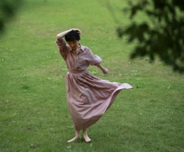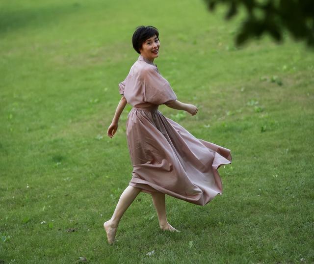 照片里的她看起来状态非常好,在草地上翩翩起舞,整个人随风舞动,看起来相当自由。