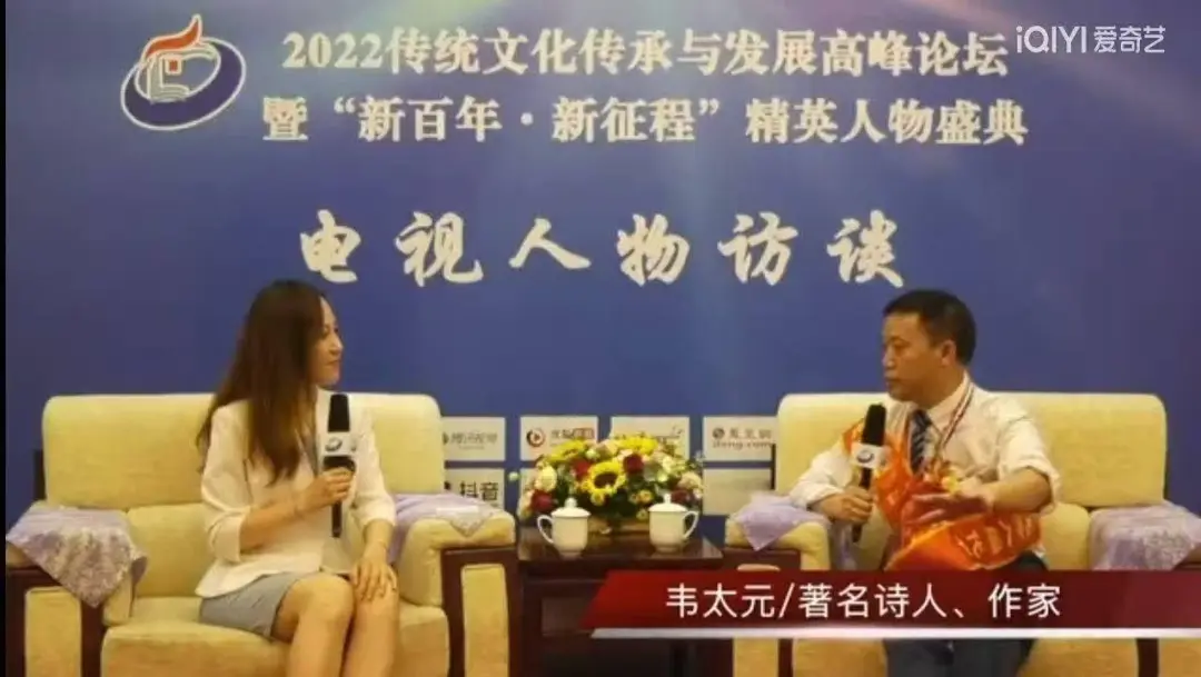 6、全国诗歌领域成就突出、巨大影响力和杰出贡献获特等奖、卓越贡献奖、明星诗人、功勋诗人艺术家奖,签约诗人、作家、文学总顾问,长期有效。北京全国精英人物盛典中以“中国文化学者”受央视总台专访。40多篇诗书画鉴赏评论文发表国家各综合艺术诗词、散文、小说、报告文学专栏。《诗情画意精神彰——鉴评刘继聪书画家艺术特点》发表在《人民日报社》,《人民日报网》《中国网》各省市电视台等百多个网站转载。7、韦太元集小说、报告文学、百多篇散文、杂文、考古发现研究文、诗、词(五千多首)、书法、绘画、诗、书、画的鉴赏、评论文(50多篇)、研究探索于一身,韦太元正在努力做个名副其实的德艺双馨的人民艺术家和世界级艺术大师。