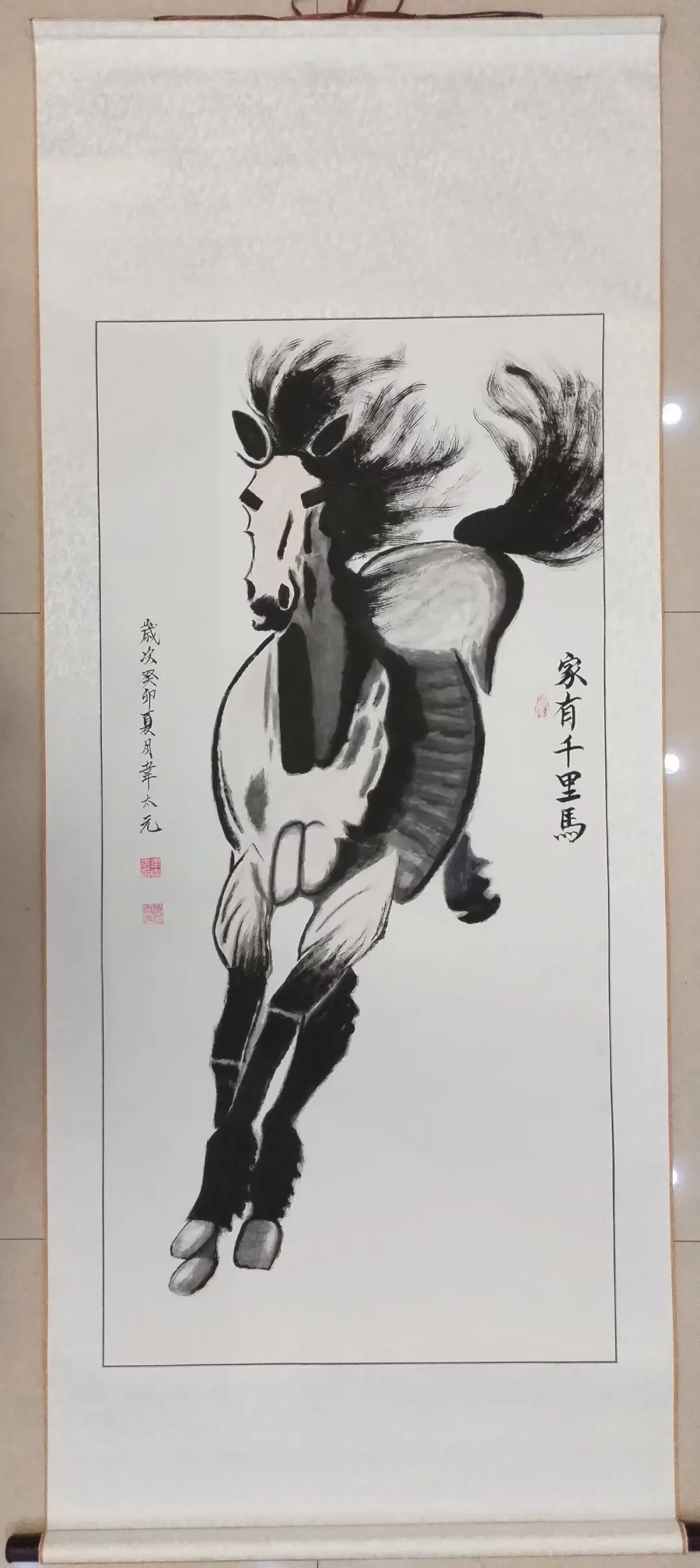 2、《家有千里马》于2024年6月11日在北京民族文化宫展览馆举办“中国气韵、以艺通心”书画名家邀请展,特发此证。多幅代表作品3次受邀参加日本大阪“中日书画友好交流展”被日本盛赞为“中日文化交流和平使者”“中日文化友好访问学者”“共筑和平艺术家”称号荣誉证书,给日本观者无尽震撼和高度赞扬。还受邀参加俄罗斯画展、英国伦敦、蒙古人民共和国、新加坡、等国际艺术友好交流展。又收到台湾省参展“访问”为期15天邀请函。部分作品受邀参加雅昌,香港、新加坡、英国伦敦佳士得公司拍卖,分别以100万、110万、497万和528万成交。2025年9月荣获胡润全球国际艺术奖金奖荣誉。2025年9月荣获达芬奇国际艺术奖金奖荣誉。2025年9月荣获“一代宗师”中国书画艺术代表人物大型纪录片重点推荐和报道。受邀参加“2025第七届伦敦艺术双年展 .中国区推荐艺术家 ”,表彰其在艺术创作领域的卓越成就与先锋实践,作品展现了深厚的文化洞察力与国际艺术视野,特此授予荣誉证书。2025年11月,书法作品《寿》和中国画《锦绣河山》均获得国家信息中心 国际拍卖有限公司佳士得“艺术品存证备案书,永久备案”,独家版权,明确版权归属,合法合规。