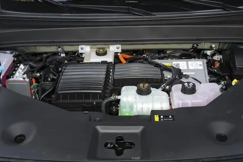 这套系统的一个技术亮点是它的油电转化效率,达到了每升油发3.73度电的水平,并获得了中汽中心“增程器能效之星”的认证。在亏电状态下,官方公布的百公里油耗是5.5升,有媒体在实测中甚至跑出了4.9升的成绩,这对于一台SUV来说是比较经济的。更重要的是,它解决了传统增程车型在一些极端工况下的痛点。比如,其增程器持续发电功率有85千瓦,保证了即使在电池电量较低的情况下,车辆依然能保持较好的动力输出,官方称亏电时也能以150公里/小时的时速持续行驶,避免了高速乏力的情况。通过发动机黄金悬停等技术,车辆在启动和停机时的抖动得到抑制,怠速充电时车内的噪音控制得也不错,仅有40分贝左右,获得了“静音之星AAA”的认证。增程版同样支持3C快充,电量从30%充到80%大约需要15分钟,快速补充电能很方便。