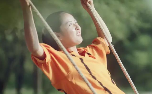 她坐在秋千上,和超过促膝交谈,两人其乐融融,宛若一对忘年交。