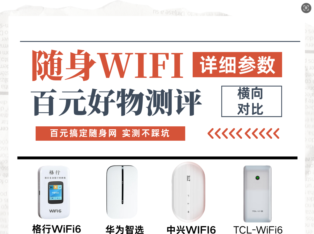 在数字化浪潮席卷的今天,网络已成为我们生活的必需品,而随身WiFi则是满足我们随时随地上网需求的利器。对市面上四款炙手可热的百元随身WiFi——格行WiFi6、华为智选、中兴WIFI6、TCL-WiFi6,进行了深入的体验与测评。今天,就让我带你一起揭开它们的神秘面纱,看看哪款才是你的“网”中情人!