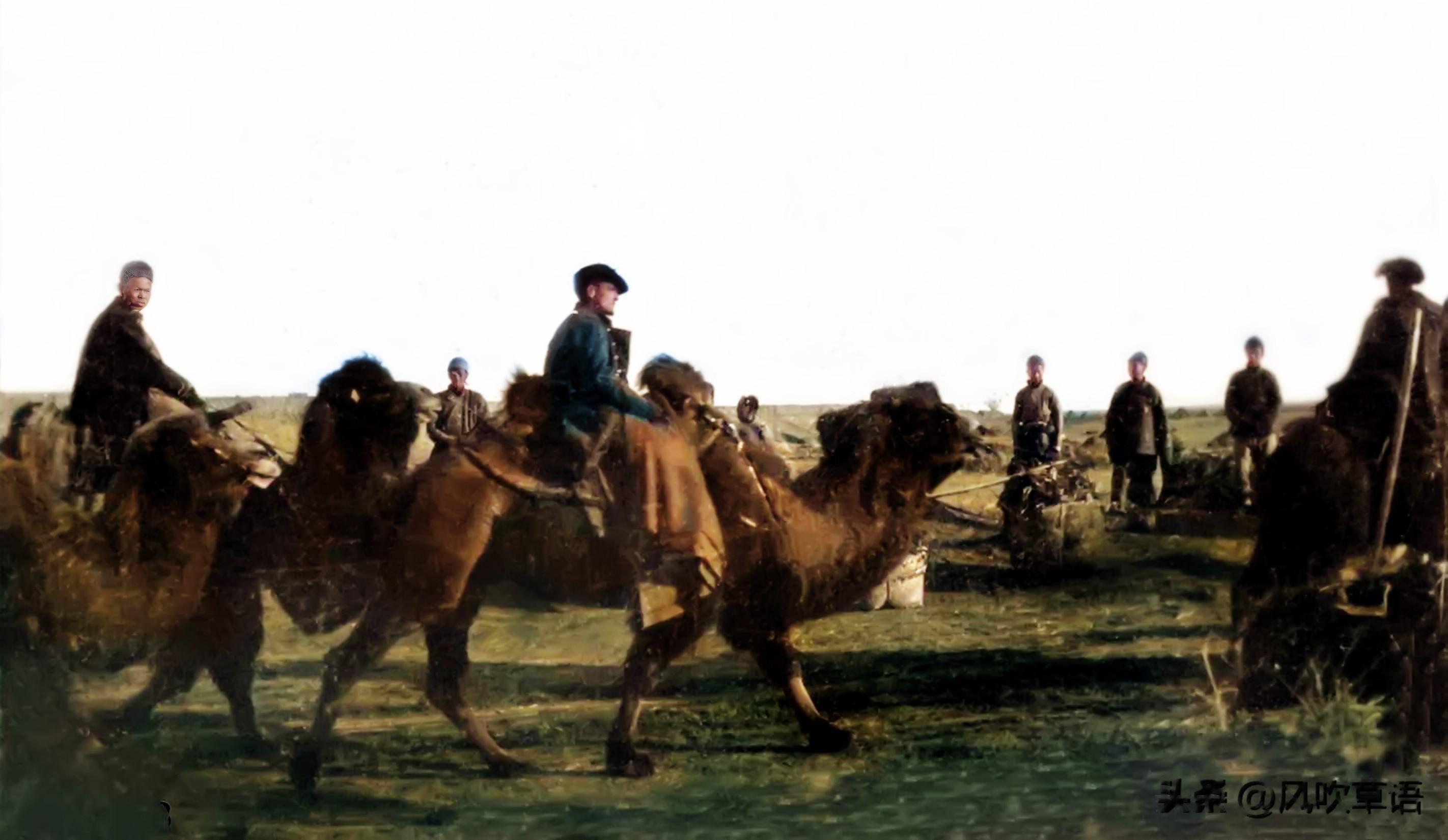 胜芳是京津保地区重要的水陆码头和商业枢纽,水路靠船,陆地则依靠牛马和骆驼等牲畜。图为胜芳镇境内路上行走的骆驼队,