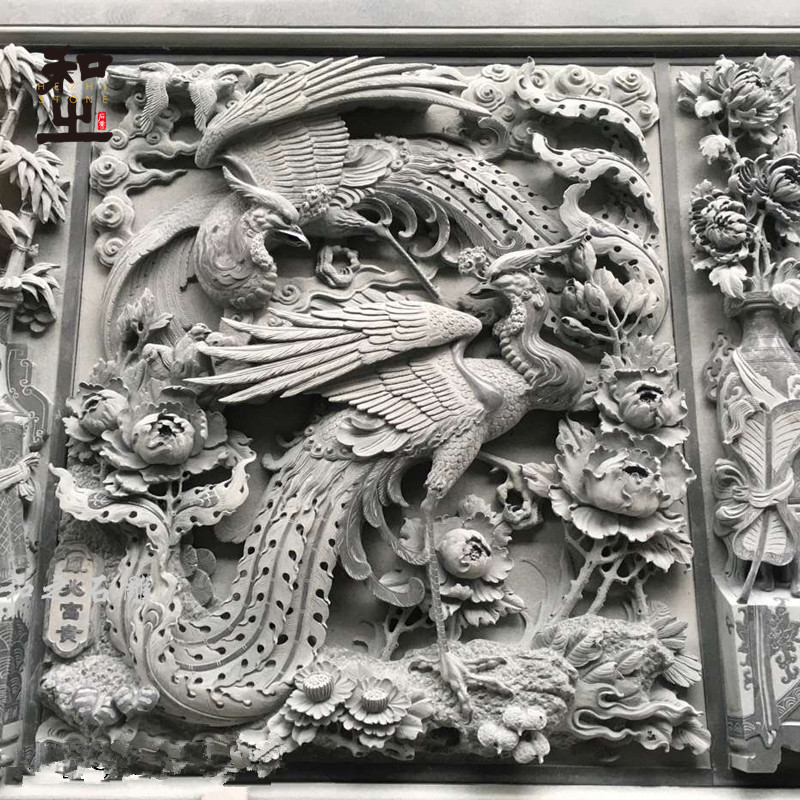青石花草鸟兽浮雕壁画的雕刻