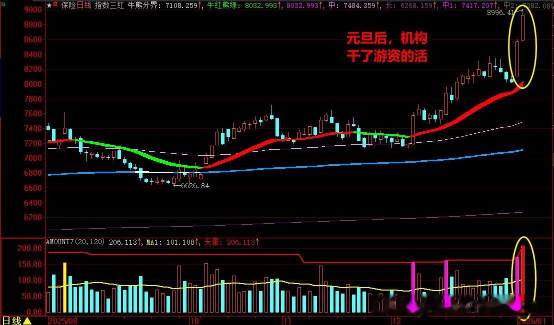 不管你同不同意,我在直播间早上说了:从昨天开始的行情,印证了我之前那句“所有人不管25年赚多赚少甚至亏钱,26年都在新起跑线上,发令枪响了!”行情开始了!为啥周一量能起来了?为啥周一情绪票和机构票能“握手言和”?今天保险(机构代表)还在“迈着大步”涨,情绪票“脑机”也接着嗨——说明,资金已经不是问题,这就是新行情起来的信号!