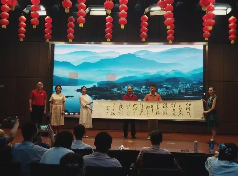 著名书法家夏有祥先生赠送书法作品:《苏东坡中秋诗会雅集》,徐徐展开,端庄典雅,诗会雅集正式开始。